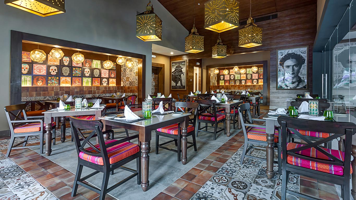 The laid-back, saloon-style atmosphere in this cantina serves up the best dishes from both sides of the border, with signature fajitas and savory Tex-Mex classics. Be sure to order a tequila flight or grab your favorite branded merchandise ($).
